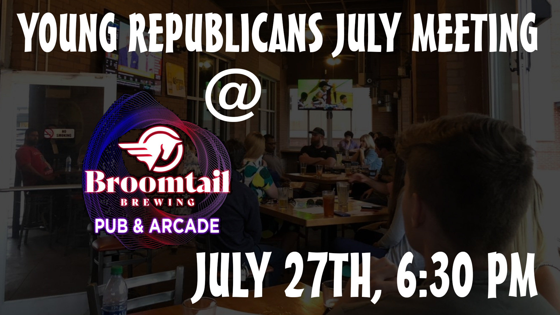 Our July meeting will take place at Broomtail Brewing and Arcade at 6:30pm on Wednesday, July 27th. We will get an update from our state Young Republican Secretary.